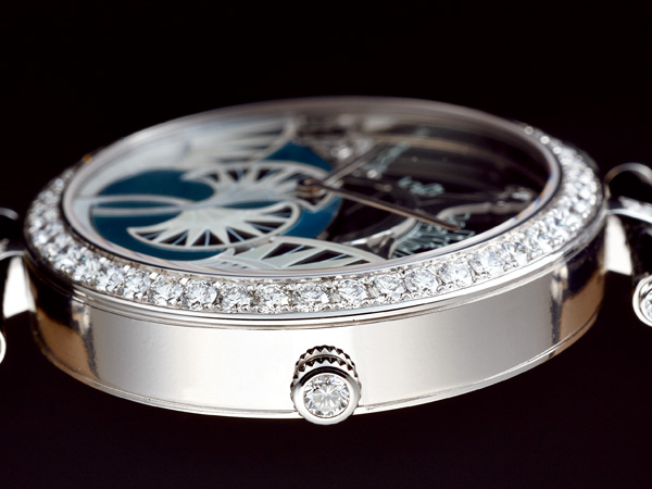除了詩意的元素外,這款錶上的裝飾元素其實也需要強大的品牌力才能集結。若非梵克雅寶,誰有能力將鑽石鑲嵌、珍珠母貝拚貼、金雕、半寶石加工結合在一起?更不必提到還要結合頂級的機械式機芯,專門的功能模組,以及貴金屬的錶殼。