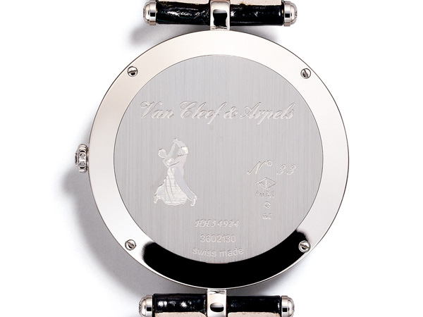 透過故事創造錶款,是梵克雅寶近年的發展軸線,除了正常的時間指針外,這款錶以五組金雕人偶組成的圈圈代表24個小時的流逝,它沒有特定指出時刻,黑白舞會裡的人是無限循環的。在浪漫的時間國度裡,錯落的舞步與迴旋的身影此起彼落。詩意代替了時間指示的功能,讓人沈醉在奇幻的想像之中。