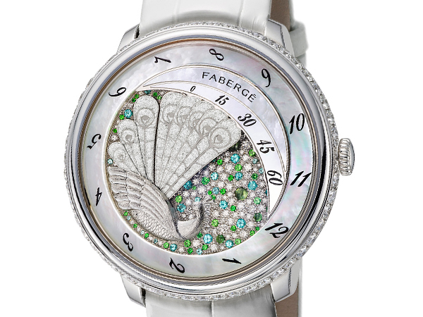2015年BASEL錶展,俄國絕藝法貝熱FABERGÉ再添新作,女用腕錶Lady Compliqué Peacock秉承頂級珠寶工藝要求,結合瑞士鐘錶製作匠心,集珠寶鑲嵌、逆跳複雜功能、孔雀開屏瑞兆於一身,以前所未有的方式記錄時光流轉;沙皇時期的珠寶裝飾工藝與最尖端的AGENHOR瑞士製錶科技合而為一。原以彩蛋展現俄國極致工藝代表作,如今展現於手錶之上,獨創逆跳功能結合靈動美感,以孔雀開屏展現女性麗質。