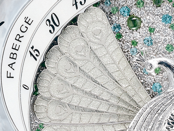 AGENHOR錶廠特地打造了6901手上鍊機芯,共使用242枚零件,並依照日內瓦印記高標準打造。孔雀開展來自法貝熱1908年彩蛋上的圖案,造型美感與創意兼具,同時結合面盤上的寶石鑲嵌、珍珠母貝彩繪及金雕,更顯得珍稀罕有。