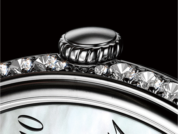 以寶石、珍貴稀有金屬鑲嵌藝品是法貝熱拿手工藝之一,此錶殼共鑲54顆鑽石,重達1.83克拉;傳統製錶品牌鮮少將鑽石鑲嵌在錶身最突出處。