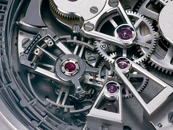 CHRISTOPHE CLARET在2015年BASEL錶展中,將一款全新的Allegro放在一杯水中,無須任何解釋,已經吸引眾人目光。Allegro具備三問與兩地時間功能,雖非品牌首次結合此二功能,但不同於一般的革新,讓人明白品牌的進化根本沒有極限。內行看門道,外行看熱鬧,各取所需,各有所得。Allergo的設計就像一幀腕錶齒輪傳動經絡圖一般,不避諱地讓人們一窺所有機械結構的運行奧妙。