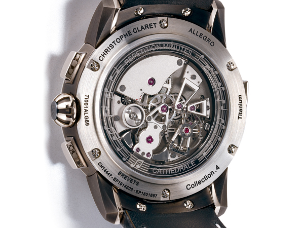 礙於保密協定,難以細數Christophe Claret究竟為哪些品牌效力。但由目前已知來看,他對三問,或是腕錶響鬧機制必然有強烈熱情。為他帶來名聲的早期作品,正是為ULYSSE NARDIN雅典所造的三問活動人偶,其機制雅典如今依舊沿用。而在創立自己品牌後,幾乎所有錶款也都有敲響功能,縱使非三問,但在啟動機制時,也會發出清脆悠揚的提示聲。或許他認為製錶是種自我挑戰,賽前敲個比賽鐘也是合理。