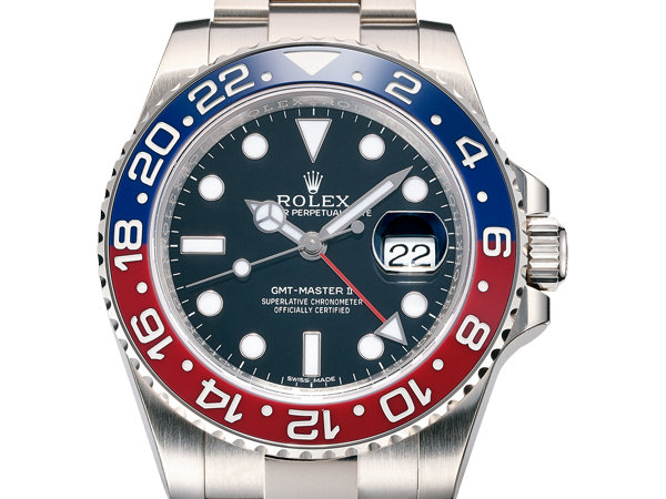 型號Ref.116719BLRO/直徑40mm 18K白金錶殼/紅藍雙色Cerachrom陶瓷錶圈/時間指示、日期窗與兩地時間指針/3186自動上鍊機芯/瑞士C.O.S.C.天文台認證/藍寶石水晶鏡面/防水100米/參考價請電洽