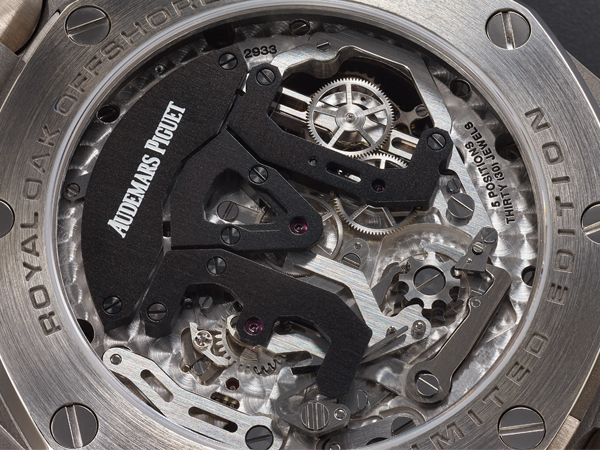 這款錶始終有著濃厚的實驗意味,儘管在品名裡沒有冠上「Concept」字樣,但它由內而外都是充滿概念性的,從原本的2912型手動上鍊機芯升級到2933型,還有外殼材質陸續更動,所使用者都是愛彼已經能夠駕馭的新材質。機芯本身原本就有強大的技術性,傳承自八大天王、2974型機芯的特點,但把各個機構再度強化,讓陀飛輪、導柱輪計時碼錶及仿古的馬爾他十字止逆雙發條盒裝置結合在一起。
