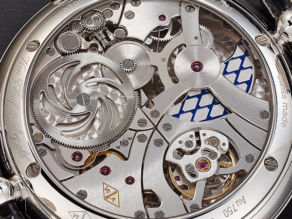 每個小時更替時,此款機芯必須能一次推動逆跳針、兩地時間小時盤三個地方,一般逆跳錶款的系統會累積一整個小時的動力,再讓指針跳動;但此款機芯特別之處在於,AGENHOR錶廠為它設計出一個可快速收集動能的系統,在每小時最後五分鐘集結動力,同時推動三組機制。