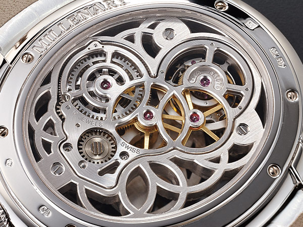 也因此它有著很多難以超越的特性,機芯結構絕對強固,這是許多原本不是鏤空設計的機芯在加工後必須面對的問題,此外,它的結構設計令人心醉,由機板、橋板到外加的鑲鑽面盤,加上配置在最左側的陀飛輪,每部份都有存在的必要,又彷彿可以有無窮盡的變形。