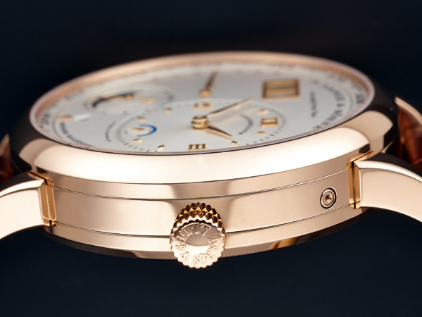 之所以說它是一款傑作萬年曆的理由在於,它錶面簡潔的程度幾乎不會讓人意識到它是一只萬年曆錶,而上面列出的一長串一般萬年曆會顯示的資訊,它卻一樣也沒少,在這裡朗格的設計師又一次示範了手錶面盤規劃的最高境界。
