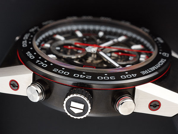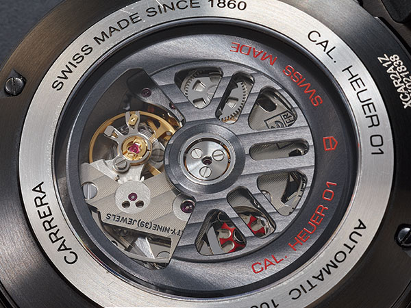 同時錶款的面盤採用半鏤空設計,可窺視部分零件的運作過程,這也是過去Carrera系列中,較少使用的設計。錶殼內部使用品牌自製的Heuer 01自動計時機芯,其基礎來自1887自動機芯,具有魔術槓桿雙向自動上鍊結構,動力儲存則為50小時。
