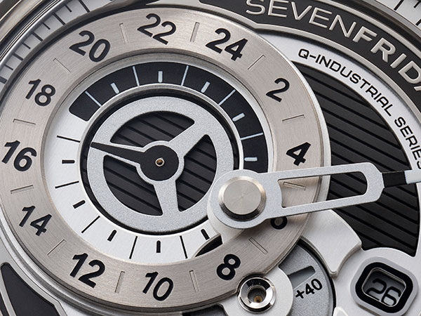 嚴格而論,全新Q系列就像是P系列與V系列的混合版本,藉由全新的佈局,讓時間的判讀能更加清晰明確。而如此配置的另一考量,是採用與現有錶款共同的零件,能夠減少成本,進而有效控制價格。這樣的考量在任何品牌都是合理的,但似乎目前也只有SEVENFRIDAY積極且明確地落實著。