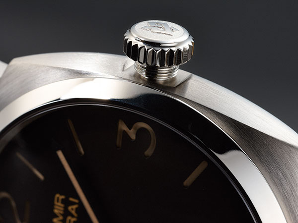 由於Radiomir 1940的錶殼外型,是昔日Radiomir演變至Luminor中間的過渡型錶款,因此採用更容易操作的大型圓柱形錶冠,透過旋入式設計,仍使錶款保有100米的防水深度。