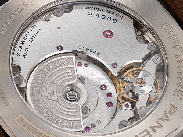 這是沛納海首次採用微型自動盤設計,可降低機芯的厚度,來到3.95mm,較P.9000機芯的7.9mm可說是輕薄許多,加上使用雙向自動上鍊結構,以及鎢合金自動盤,上鍊效果也十分優異。