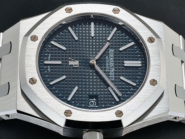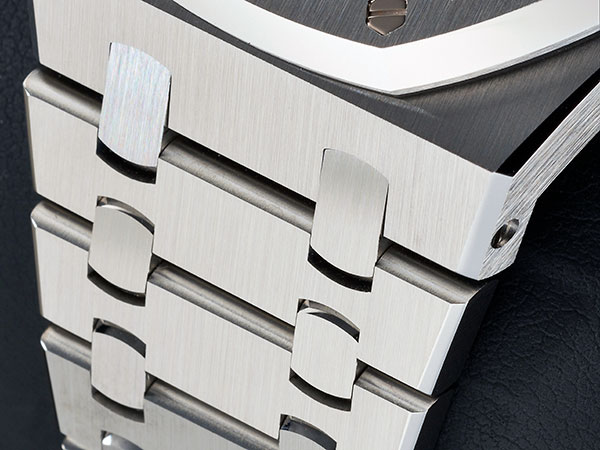 正因為如此,錶殼的製作難度也提升許多,所以皇家橡樹獨特的八角形錶圈和八顆自錶面至錶背互相對鎖的外露螺絲,可以將錶殼內的防水膠圈與錶殼緊密的結合,提升這款運動錶的防水功能。