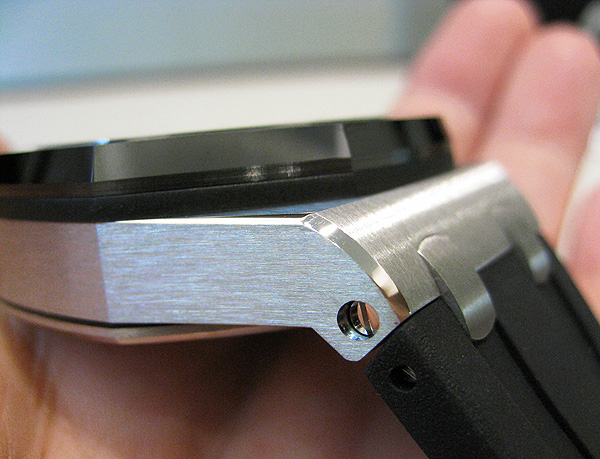 由於ROO系列以運動以及防水為設計概念,因此具備旋入式錶冠設計,龍管的底層還有一圈黑色防水橡膠,在錶冠鎖緊時,可提高防水性能。