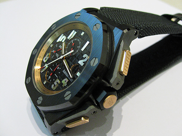 這是今年推出的ROO阿諾傳承紀念錶,自從阿諾在1999年與AP合作後,至今已經超過十年的合作關係,這是以阿諾為名的第八款腕錶,全球限量1500只。採用黑色陶瓷為錶殼材質,直徑達48mm,使用2326/2840自動上鍊機芯,動力儲存38小時。