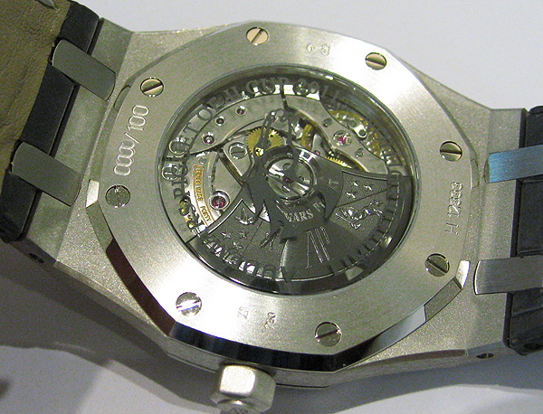 由於皇家橡樹系列,大部分具備防磁底蓋設計,因此如果使用透明底蓋設計,就必須捨棄掉這項功能,相信原廠設計師與消費者都會有這種難以抉擇的情況發生。本款腕錶採用自製的3120自動機芯,具有60小時的動力儲存。