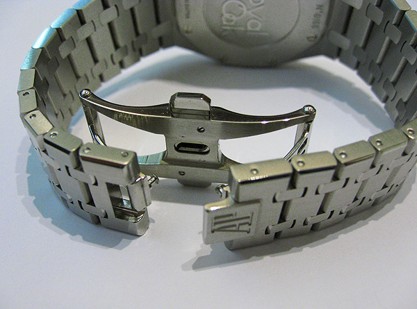 錶款使用雙摺疊扣設計,結構相當堅固。從上方的照片來看,也可以發現錶款使用螺絲鎖入式不鏽鋼底蓋。