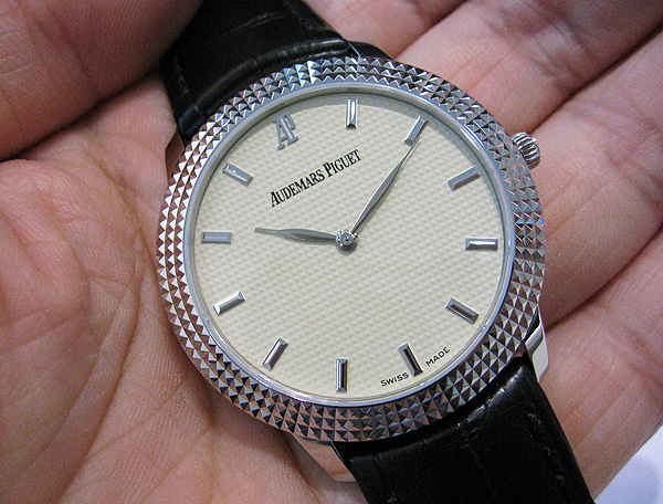 由於皇家橡樹錶款不如皇家橡樹離岸型系列那樣強調運動特性,所以錶殼本身會比較輕薄,加上沒有計時功能,所以錶殼厚度不到一公分。