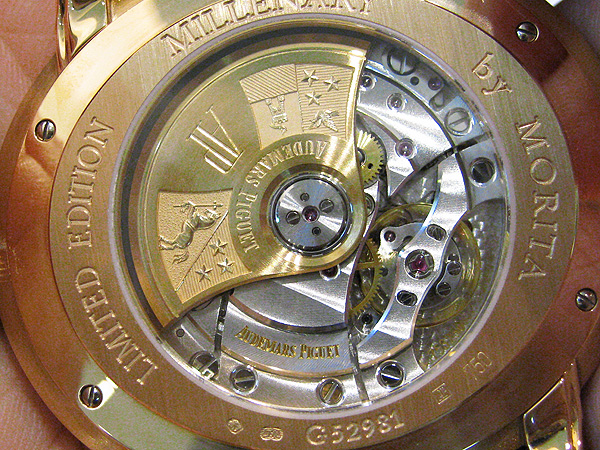 至於錶款搭載的機芯為自製的Cal.3120自動機芯,是目前AP的主力機種,動力儲存可達60小時以上。一般來說,先前的千禧系列大多採用非透明底蓋設計,本款腕錶是少見的透明底蓋款式。