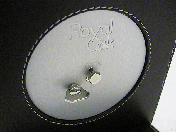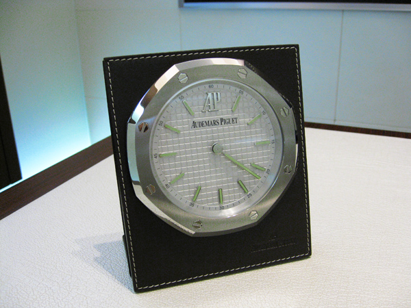 這一個Royal Oak皇家橡樹桌鐘,是小編在專賣店中所發現的特殊商品,原本以為內部是採用石英機芯,但是店方人員特別說明是採用手上鍊機芯,且具有七天的動力儲存功能,令小編精神為之一振,請店員特別從展示櫃中取出拍照。
