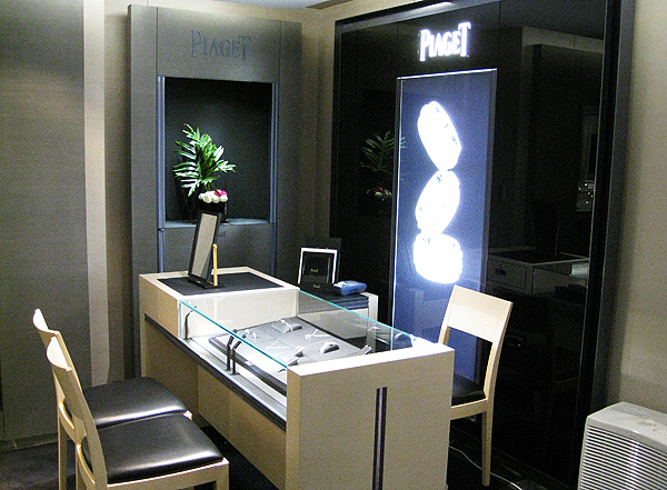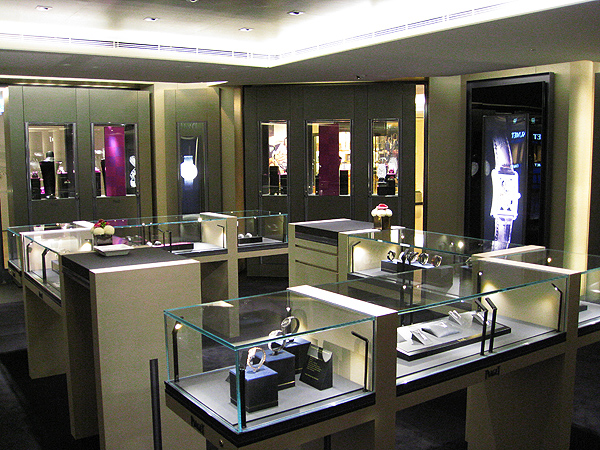這是伯爵專賣店的全景,除了腕錶商品之外,當然也有為數眾多的鑽石與珠寶商品,相信是許多貴婦逛街的最愛。店內的展示空間約30餘坪,後方有一個半開放的VIP鑑賞室。