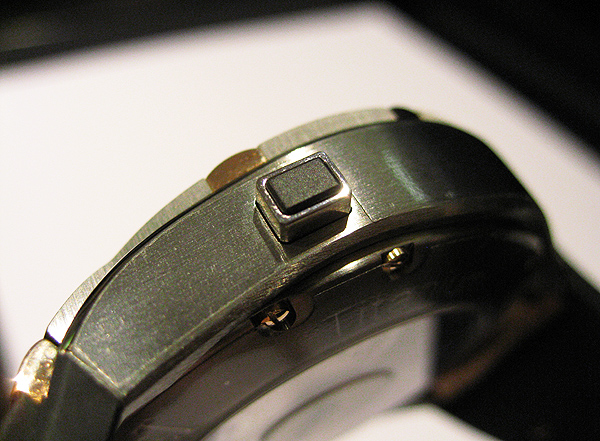位於錶殼側面十點鐘位置的按把,可快調兩地時間功能。從這一張圖片來看,網友們可能會發現,部分錶殼有黏貼原廠膠膜,與勞力士相同。