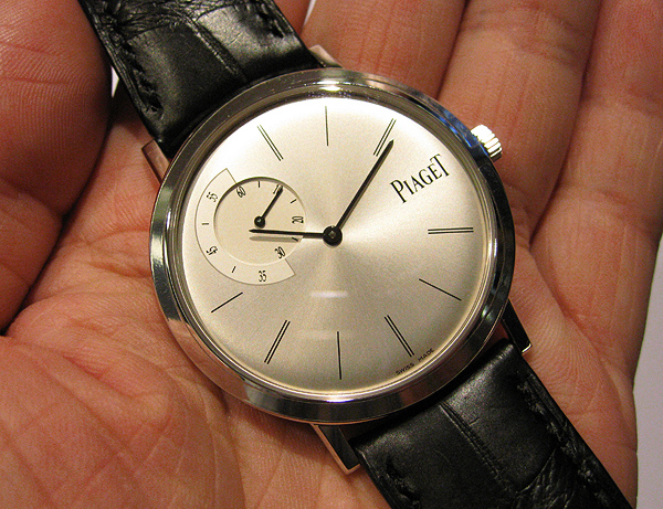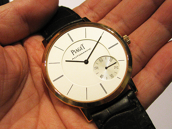 這是伯爵在2010年推出的Altiplano自動腕錶,其小秒針位於五點鐘位置。本款腕錶的最特別之處,就是採用最新的1208P超薄自動機芯,錶款厚度僅有5.25mm,是目前業界最薄的自動腕錶。