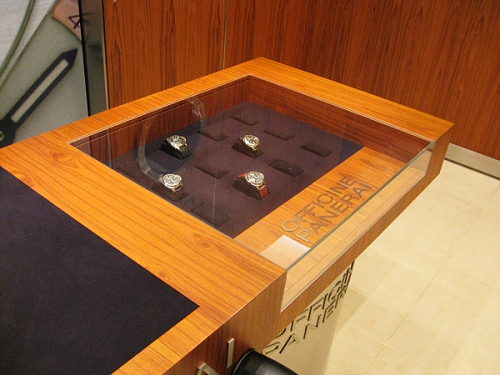 專賣店的外部展示櫃除了擺設錶款之外,也有展示與沛納海相關的小東西。