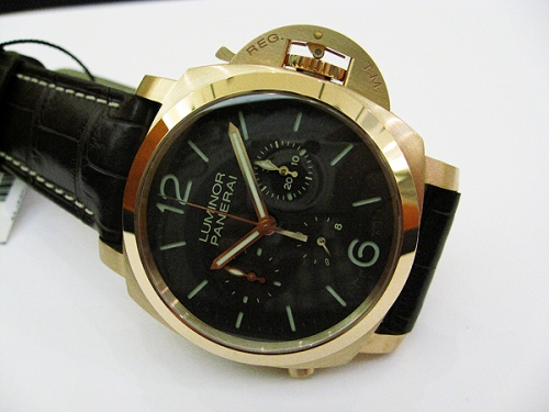 PAM00346, Radiomir 8Days 45mm Titanium ,採用金色指針與棕色面盤,不過小弟沒有把面盤的顏色拍好,殘念。