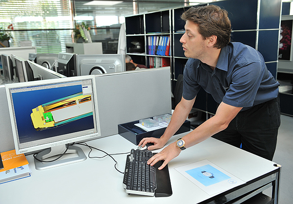 接下來我們進入總廠的設計部門,設計師正向我們解說設計錶款的流程。透過先進的電腦繪製技術,可精確的描繪錶款的所需細節,包括每一個零件的尺寸規格,面盤與玻璃鏡面的距離,甚至是螺絲所需的孔洞大小。伯爵擅長製作超薄錶款,因此需要精確的設計規格,來達成節省空間的目標,同時確保錶款的耐用度。