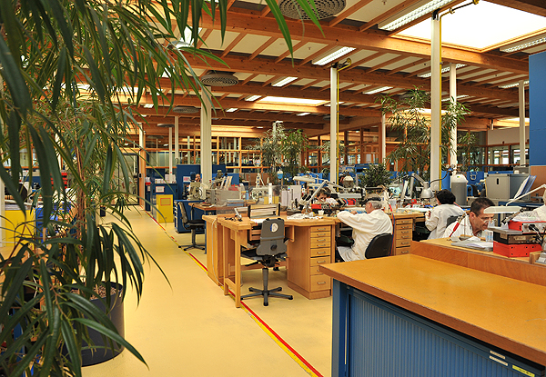 接著我們開始進入總廠佔地最廣的製造部門。雖然專業製錶廠內,仍是免除不了機械的金屬與油氣味,但是伯爵錶廠的人性化設計,與整齊清潔的環境,絕對會讓製錶師的工作效率提高許多。