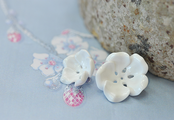 這一朵朵的白色櫻花,是由旁邊的白玉髓(切割之後,就是玉石)所雕塑出來,然後在塗上白色亮漆,製作的工序非常繁複。