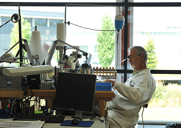 這是廠內資深的大師級人物,他正在研究珠寶產品的設計手稿,由於珠寶部門的商品都具有高度機密,因此禁止攝影。但小編依稀記得,手稿上是一款非常複雜的華麗鑽錶,大概是數千萬起跳的價格。