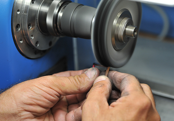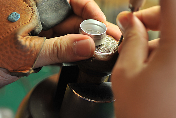 製錶師透過砂輪機,塑造出錶圈的表面形狀。