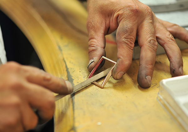 而廠方人員首先讓我們參觀伯爵製造部門中,佔地不大,但生產價值卻最高的單位,那就是珠寶製造部門。這裡生產伯爵引以為傲的珠寶飾品與鑽錶,每一件產品的價值都是百萬元起跳;透過設計師的設計與繪畫出的手稿,再轉化為實際的成品。