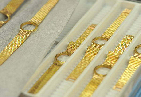 相較於許多鐘錶品牌,錶殼與鍊帶的製作仍需仰賴周邊的衛星工廠來提供,伯爵則倚賴自家的工廠來完成,因此總廠製作錶殼與鍊帶的部門,佔地最廣,人數也最多。這裡則是錶廠內的「小金庫」,放置製作錶殼、鍊帶所需的金條。
