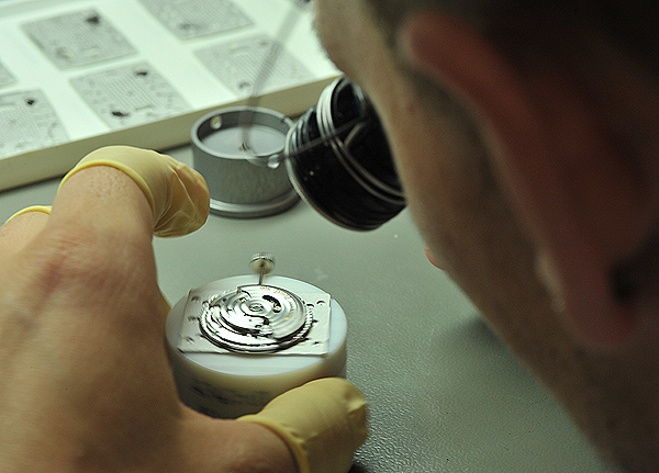 製錶師將面盤與機芯組裝一起,並進行品質的監控。而機芯則是來自於伯爵La Côte-aux-Fées的機芯廠。