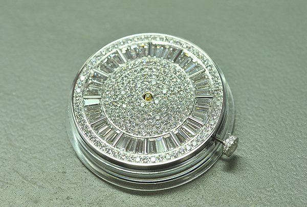 這是華麗的鑽錶,錶款的錶冠已經裝上,接下來就裝上指針與錶殼。