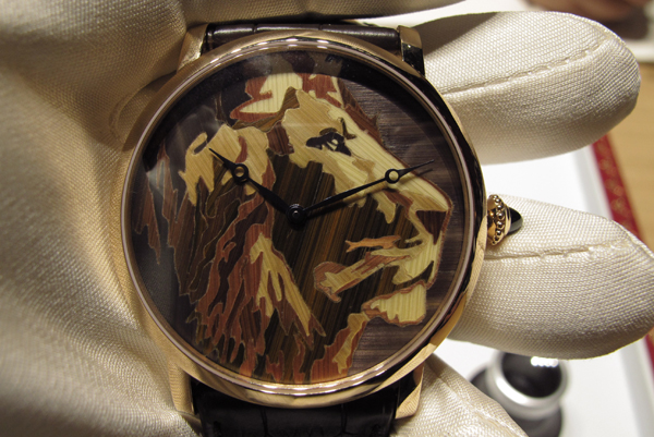 2013年SIHH中的CARTIER卡地亞,端出了非常非常非常多的作品!畢竟他們進來主攻的領域,除了珠寶錶之外,還有藝術工藝,以及複雜錶款。這個全世界排名前幾大有錢的品牌,以雄厚的實力強勢的在各領域踏出深刻的足跡。在藝術工藝方面,今年重現了極度細膩,使用了3800多個金屬珠粒拼湊的珠粒鑲嵌、瑪瑙浮雕以及...今年還有兩三個品牌都有作的立體金屬微雕。而在珠寶錶上,消失許久的Crash設計重現江湖,而珠寶錶也以分別是多變的時間、隱匿的時間,以及不可預測的時間等三個主題說故事,作品相當有意思!這幾年卡地亞在機械錶領域上的野心也顯而易見,老話一句,集團買下RD後,卡地亞間接的像是吃了大還丹又打通任督二脈似的,發展複雜機械如有神助。今年發表了自製計時機芯,而且兩款神秘錶都相當讓人好奇!