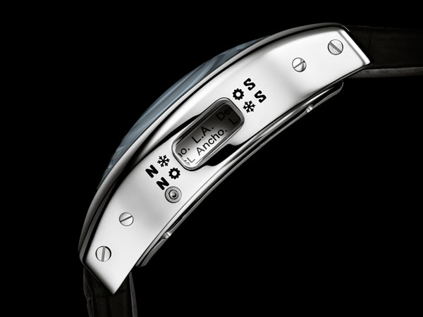 這一擁有模組化結構的腕錶搭載卡地亞1904 MC型工作坊精製機芯,它問世於拉夏德芳(la Chaux-de-Fonds)的卡地亞工坊中,能夠以最簡單的方式為現代旅行者提供基本的資訊。為保證最佳的可讀性,腕錶佩戴者所處地的時間通過主指針顯示,而出發地時間則在腕錶下方的半圓視窗中通過帶有太陽和月亮標誌的晝/夜指針顯示。這一精巧的結構與2點鐘位置的按鈕相連接,它能夠以24小時制顯示最常見的24時區對應城市的時間。不僅如此,Tortue多時區腕錶還沿用了去年推出的Calibre de Cartier多時區腕錶的設計理念:考慮到不同國家夏令時調整時間的不同,在夏令時生效的7個月中,它採用另外的參照刻度來顯示,以確保時區時間的準確性。