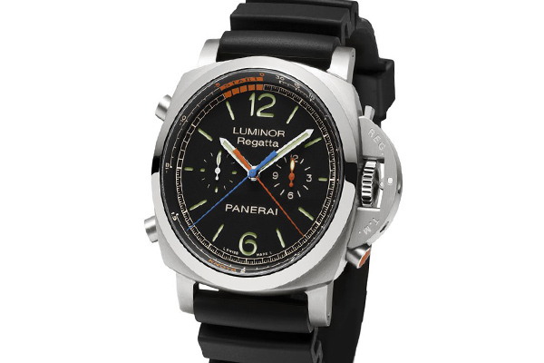PANERAI沛納海的Luminor 1950 Regatta 3 days Chrono Flyback裝載品牌自行研發的P.9100/R自動上鍊機芯,重點是錶款的嶄新的倒數計時設計,表現品牌追求效率的態度。壓按四點鐘位置的按把,可以設定中央的計時分針,以分鐘為單位,每壓按一次便會逆時針一格,最多可以倒數15分鐘。15分鐘的倒數設定,想當然是以古典帆船賽的規則為準。起跑前15分鐘就位、開跑前五分鐘預備。如此的好處是當倒數時間結束,便會直接進入計時碼錶功能,無須另行操作,非常方便。