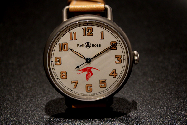 除了飛機降落地面,今年BR則另外發表一次大戰一百週年紀念錶,雖說戰爭不是什麼值的誇耀的事跡,但因戰爭所造就的諸多可歌可泣故事依舊讓人動容,今年所發表的大戰百週年紀念錶,圓形而古典,面盤下方紅色飛鳥標誌則來自於法國空軍。錶背鐫刻人像,是一次大戰時法國某位英雄的頭像(故事就請容我們查詢後補上)。灰色PVD形象,非常的懷舊。