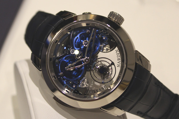 ULYSSE NARDIN 雅典今年最大的話題其實並非錶款,而是他們開發了全新的擒縱,以矽為材質的特殊形狀擒縱叉,透過矽本身的彈性運作,能夠減少動力消耗,而且也無須擒縱叉軸固定擒縱叉,可以減少磨損的可能,突破過往對於矽擒縱結構的盲點。但此機制尚未使用於腕錶中,所以我們先不在這邊說,而此外,品牌今年作品不少,發表了新的GMT機芯、搶眼的潛水錶有新的設計、琺瑯彩繪亦見精巧...好吧!私心挑了這只四搥陀飛輪,藍寶石水晶面盤,六點鐘位置陀飛輪非常通透,藍寶石水晶打造的面盤夢幻搶眼。此外,擁有自鳴單問、手動三問的功能,這實在是太美好了(捧臉頰)!!限量20只,不過一年頂多作個3到4只了不起了。