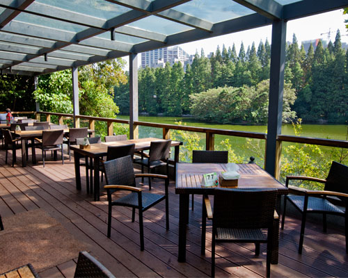 晚香亭所在地原來是合肥有名的早茶店“蘭宮”,位於環城南路。風景秀美的環城公園,整體建築為造型別緻的廊橋亭閣,錯落相間,呈現出一派江南園林景緻。晚香亭整體建築為三層,內設6個清新雅緻的包廂,二樓設有露天平台,掩映在亭台綠蔭之中,顧客在享受美食的同時,可一覽清新婉約的湖畔美景。