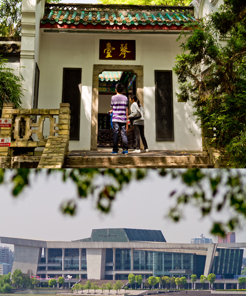 琴台,又名俞伯牙台,位於武漢市漢陽區龜山西麓,月湖東畔、相傳此地是春秋時期楚國琴師俞伯牙在此鼓琴而與子期相遇之處,特在此築台紀念。修建者充分利用地勢地形,還充分運用了中國園林設計中巧于借景的手法,把龜山月湖山水巧妙借了過來,構成一個廣闊深遠的藝術境界。古琴台是武漢的著名音樂文化古跡,新建藝文中心,即以古琴台為靈感,建成琴台大劇院與音樂廳,隔月湖與古琴台遙遙相望。