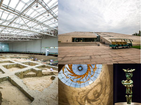 成都金沙遺址博物館位於成都市市區西北部金沙遺址路2號,園區內有“玉石之路”和“烏木林”等休閒文化景觀,金沙遺址是中國進入二十一世紀第一項重大考古發現。遺跡館可以瀏覽考古發掘現場的種種事蹟與現況,體驗考古發掘的樂趣;陳列館則羅列了發掘出來的各種文物,以“遠古家園”、“王都剪影”、“天地不絕” 、“千載遺珍”、“解讀金沙”五個展廳分別陳列展示歷史與文物,根據金沙遺址,也證實了成都成為高度發達的城市聚落距今已有三千二百餘年,古蜀人就在成都悠遠的歷史寫下了精彩的一頁。