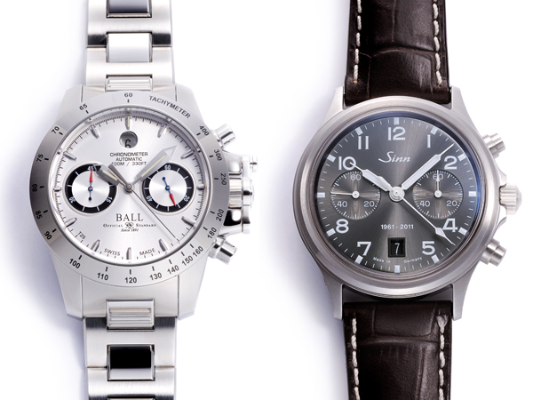 有堅固強悍精神的SINN在2011年創立五十週年時,沒有選擇複雜的性能,而是推出飛行風格的Sinn 358 Anniversary,機芯搭載改制自Valjoux 7750機芯的SZ05自動上鍊機芯,除了面盤九點鐘位置的小秒盤,三點鐘位置則是60分鐘計時盤,且在面盤六點鐘位置除了日期窗,特別設計的1961-2011字樣也充滿紀念意義。此外面盤經鐵灰色電鍍處理,加上厚度5mm的復古弧形藍寶石水晶鏡面,使錶款更有懷舊感,另外本款防水百米,自然也少不了SINN專利的Ar機芯防潮系統與錶冠及按把的雙膠圈設計。