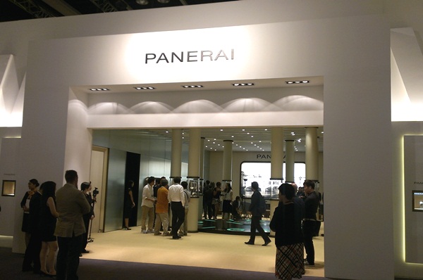 沛納海展場以明亮的光線與三明治面盤為設計主軸,與S.I.H.H錶展的古銅色調,可說是截然不同。