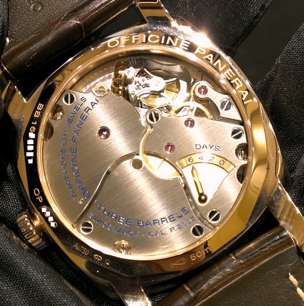 原本已經擁有P.9000系列自動機芯的沛納海,在本次的錶展中,推出厚度僅有3.95mm的P.4000機芯,比P.9000機芯的7.9mm輕薄許多,並具備雙向上鍊系統,由於搭配鎢合金自動盤,運轉的效能也非常靈敏順暢;加上三天動力儲存(上下串連的雙發條盒),未來勢必會是薄型錶款的主力機芯。