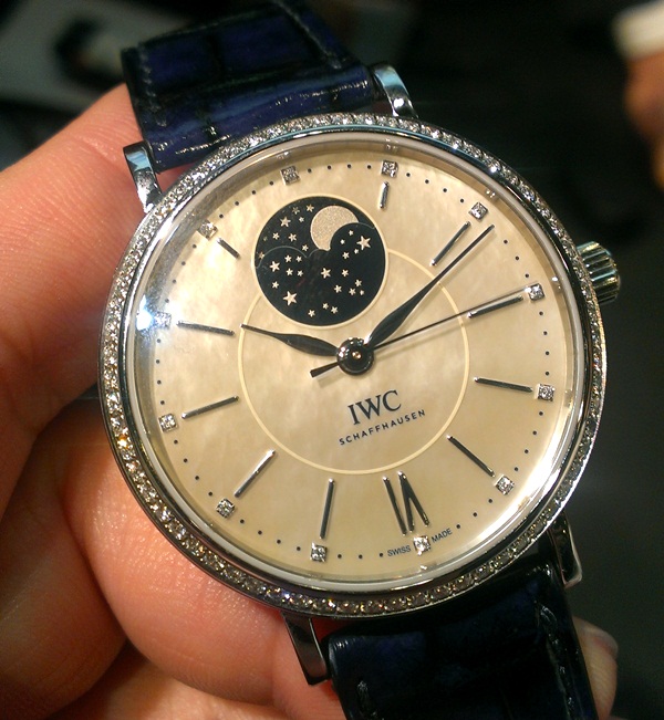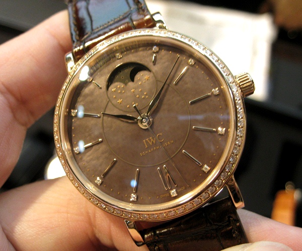 本次的月相錶款,廠方一共推出了一款不鏽鋼、三款18K玫瑰金與一款18K白金的錶款,除了白金錶款採用黑漆面盤之外,其餘全部搭配珍珠母貝面盤。